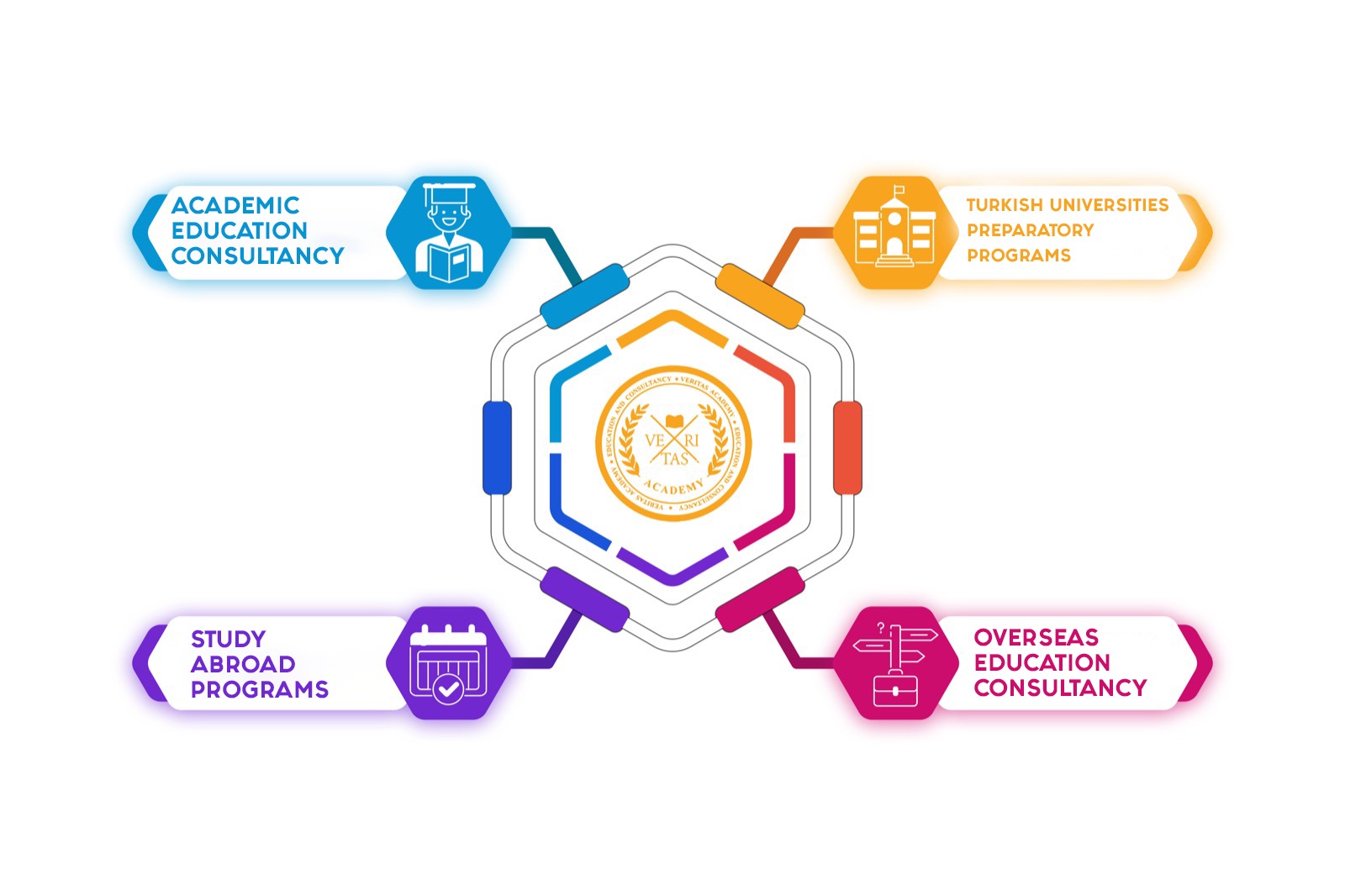 Veritas is a private educational institution that started offering its services in 2006 under the leadership of Şükrü Yiğit (METU '94). With five branches, primarily located in Istanbul including Ataşehir, Caddebostan, and Etiler, Veritas helps students who aspire to turn their dreams into reality, with over 1200 students, 200 teachers, and more than 50 administrative staff each year. Offering specialized assistance for application processes to universities, especially in the United States, Canada, and the United Kingdom, Veritas provides SAT/ACT, IB, AP, and A-Level courses. The institution also prepares students for application processes to some of Europe's leading universities in countries such as Italy, the Netherlands, and Germany. With services for more than 130 exams, including Italy's and the Netherlands' specific exams, Veritas also offers educational and advisory support for foreign students wishing to pursue university education in Turkey.